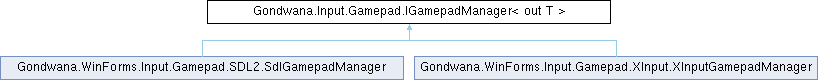 Implemented in Gondwana.WinForms.Input.Gamepad.SDL2.SdlGamepadManager, and Gondwana.WinForms.Input.Gamepad.XInput.XInputGamepadManager.